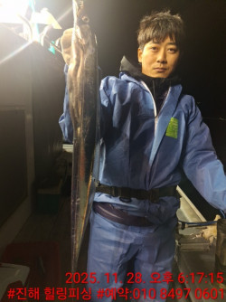 어제는 좋은 날씨 덕분인지 사이즈급 갈치들이연이어 올라와 분위기가 정말 좋았습니다. 중간중간 용가리급 대치까지 등장해 조사님들의 탄성을 이끌어냈고, 초반부터 기분 좋은 출발을 보여줬습니다.후반엔 풀치들이 조금 섞이며 조황이 주춤하기도 했지만, 전체적으로는 모두 만족하실 만큼 풍성한 손맛을 보셨습니다. 오늘은 더 좋은 포인트로 출조할 예정이니 얼른 예약하시고 손맛 즐기러 오세요!예약문의: 010-8497-060111/30(일)----3자리 여유12/1(월)----7자리 여유12/2(화)----자리 여유12/3(수)----12자리 여유*** 진해 힐링피싱 예약 안내 ***예약문의 : 010-8497-0601오시는길 : 경